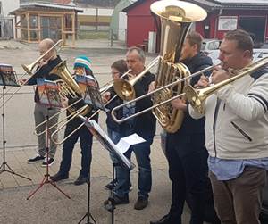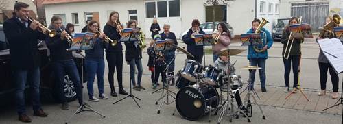 Von dem Geburtstagskind spielen zwei Söhne und zwei Enkel im Chor mit. Ein weiterer Enkel begleitete am Schlagzeug.