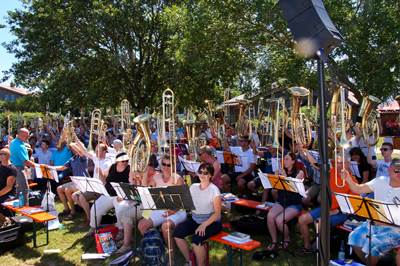 Mit 200 Bläsern erklangen die Instrumente des Bezirkschors über den See.