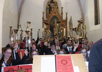 Mit der Advents-Intrade "Macht hoch die Tür" öffneten wir die Tür zum Abend. Es begrüßte Pfarrer Manfred Schmitt unsere Gäste, darunter erster Bürgermeister Karl-Heinz Fitz mit Frau. Mit anspruchsvollen Vorspielen und Sätzen (Wie soll ich dich empfangen, Jauchze laut!, Fröhlich soll mein Herze springen, O du mein Trost und süßes Hoffen) wurden die Zuhörer in schöne Klangerlebnisse gebracht.