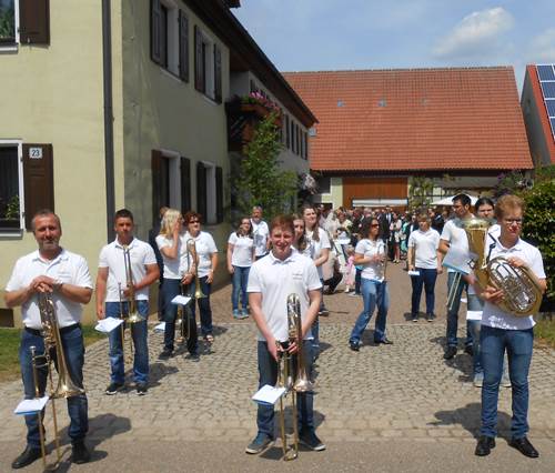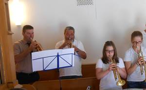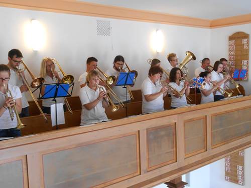 Mit "Tut mir auf die Pforte" zogen wir ins Gotteshaus. Dort spielten wir zum Einzug "Highland Cathedrale".