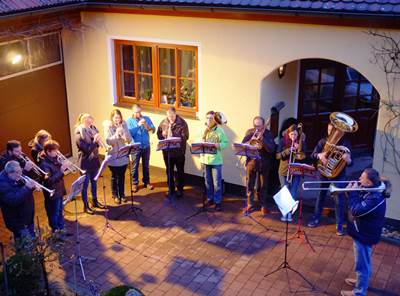 Mit Familie und Freunde feierten sie zuhause und hörten uns beim Ständchen zu.